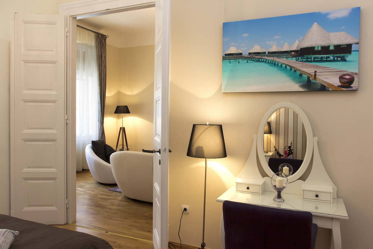 If you are looking for a luxurious, special and spacious place in the very middle of Budapest, only few steps from most of the sights and the Danube in this beautiful city, do not hesitate to book our apartment. We offer you a lovely flat with lots of possibilities around for your stay.