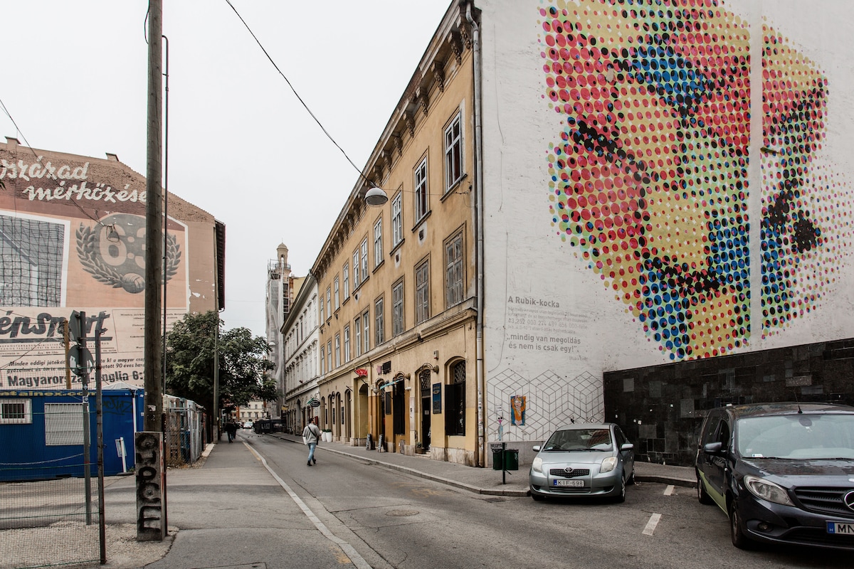 Getting aroundThe apartment is situated in the calm Rumbach Sebestyen street (District VII), 3 minutes walk from the Budapest main transportation hub - Deak Ferenc Ter.