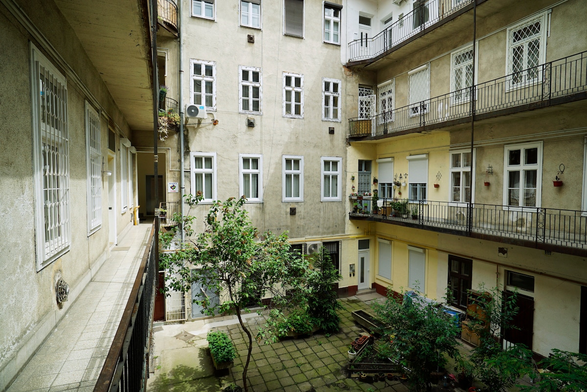 When evening comes to fall you are at the heart of Budapest party district. Famous Gozsdu Courthyard, Kiraly street with different kind of bars, restaurants and the world famous Ruin bars (Szimpla, for example) are literally 2 minutes by foot from the apartment.
